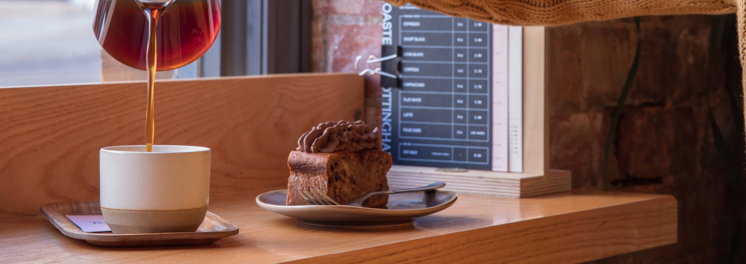At Cartwheel City we serve specialty coffee roasted by us in Sneinton, along with specialty teas, hot chocolates and cold drinks. A seasonal brunch and lunch menu is available 7 days a week, including vegan and gluten-free options. On the counter you’ll find freshly-baked artisanal cakes, buns and pastries. And on the retail shelves: bags of Cartwheel Coffee, brewing equipment and supplies. Our baristas are known for their friendliness and expertise, and are always happy to provide recommendations!