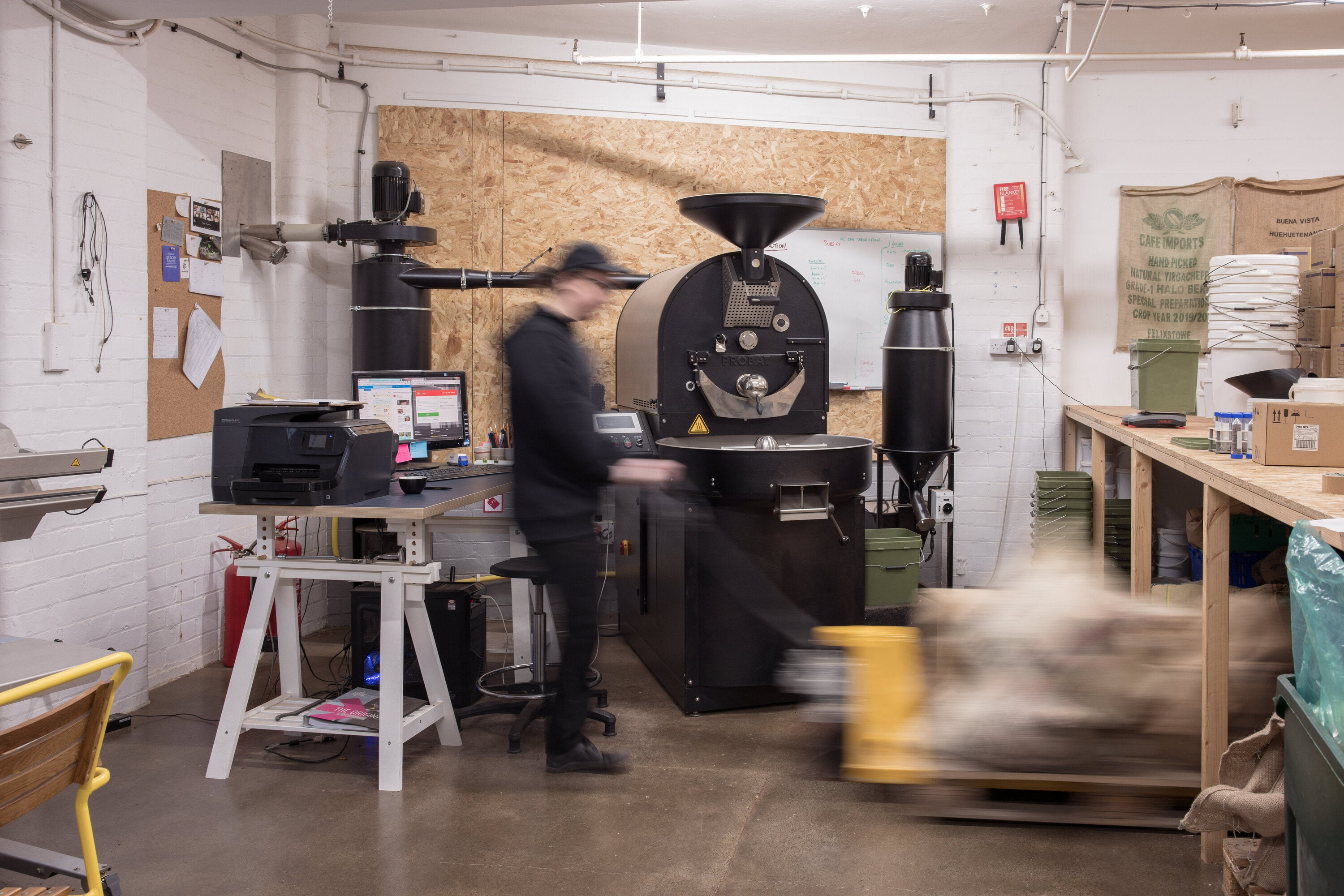 This space is now our HQ for production, housing our Probat ‘Probatone 12’ drum roaster. A newer addition to the space is our purpose built bakery, from which we supply fresh bakes to our two cafe sites.